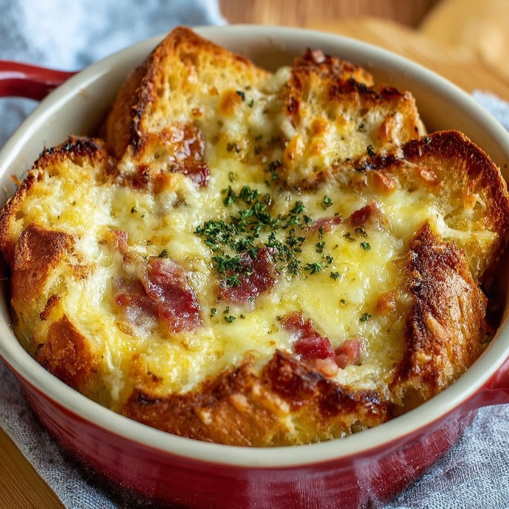Ce type de préparation repose sur un principe simple. Le pain absorbe un mélange à base de lait, d œufs et de crème, ce qui lui redonne du moelleux. Le jambon et le fromage apportent gourmandise et caractère, tandis que la cuisson au four permet d obtenir un ensemble fondant et gratiné.