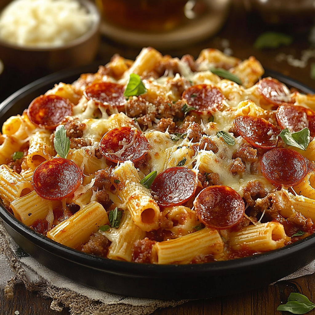 Ce gratin de pâtes à la pizza au pepperoni est une véritable explosion de saveurs. Facile à préparer, il est parfait pour les repas en famille et pour impressionner sans passer des heures en cuisine. Ajoutez-y vos ingrédients préférés et servez ce plat bien chaud pour un moment de gourmandise inoubliable. Bon appétit !