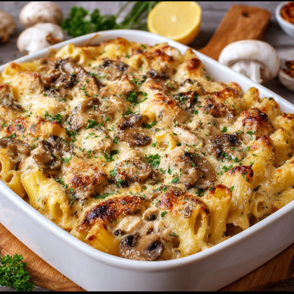 Le gratin de pâtes au poulet et champignons est l’un de ces plats qui réchauffent le cœur et rassemblent toute la famille autour de la table. Facile à préparer, économique et incroyablement savoureux, il combine la douceur des pâtes, le moelleux du poulet et le parfum irrésistible des champignons dans une sauce crémeuse, le tout sublimé par une croûte de fromage gratinée.