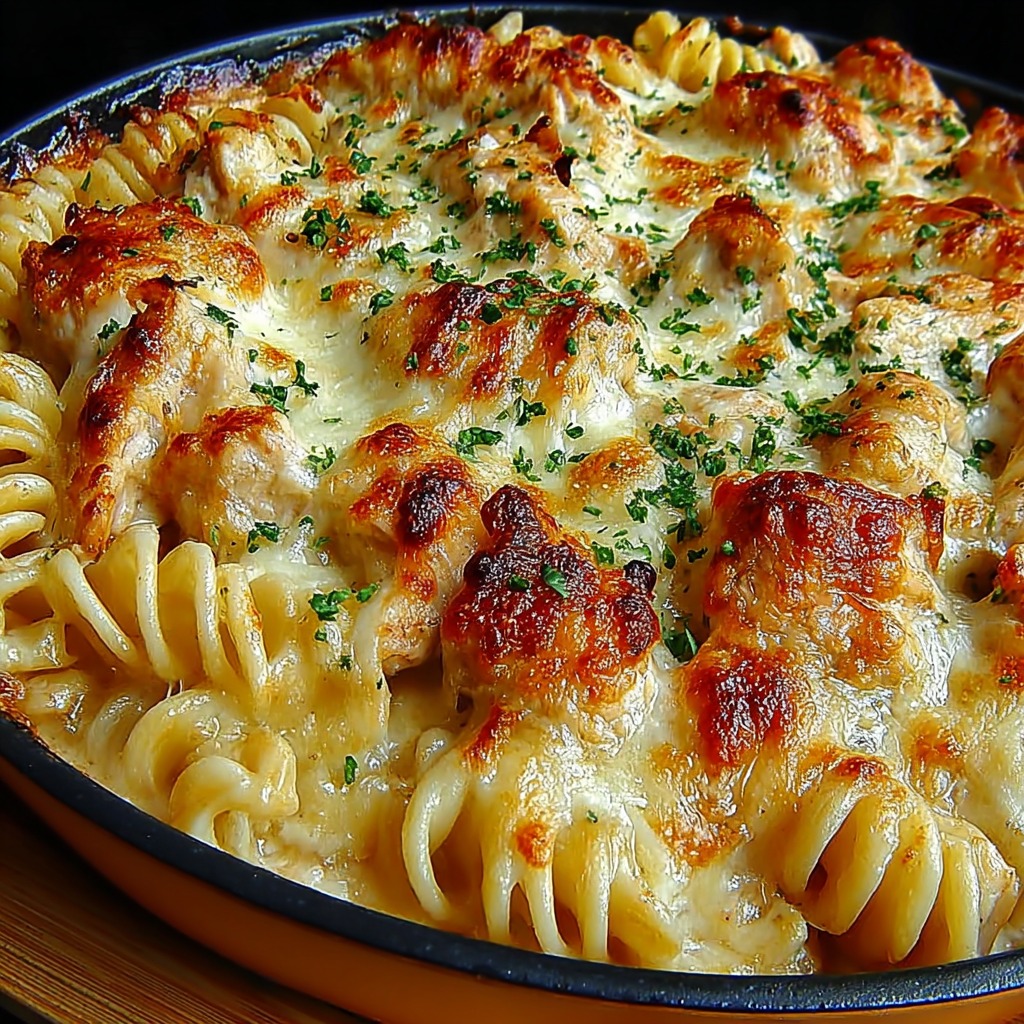 Gratin de pâtes crémeux au poulet et fromage