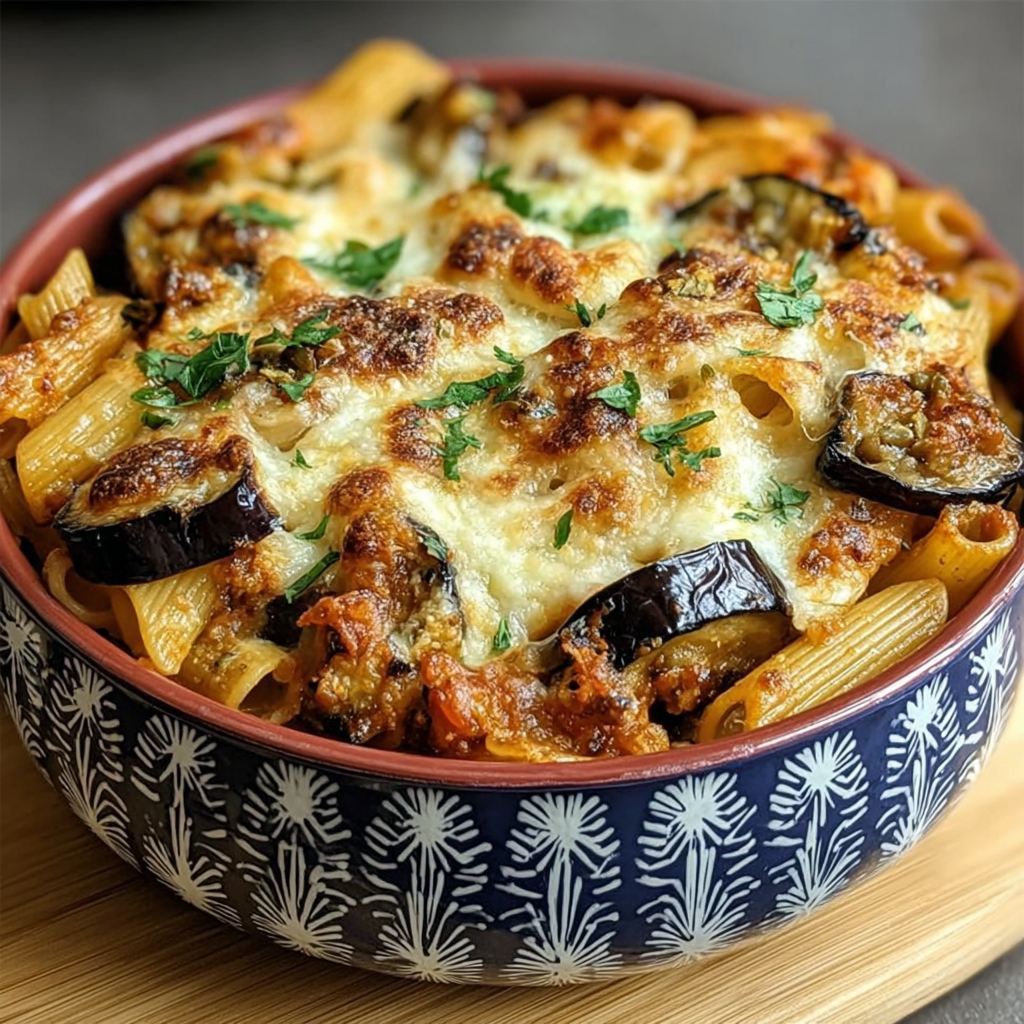 Le gratin de pâtes aux aubergines et au fromage est un plat familial, généreux et réconfortant. Il combine la douceur des aubergines fondantes, la richesse d’une sauce tomate parfumée et le moelleux des pâtes enrobées de fromage gratiné. C’est une recette parfaite pour transformer des ingrédients simples en un plat savoureux qui plaît aussi bien aux enfants qu’aux adultes.