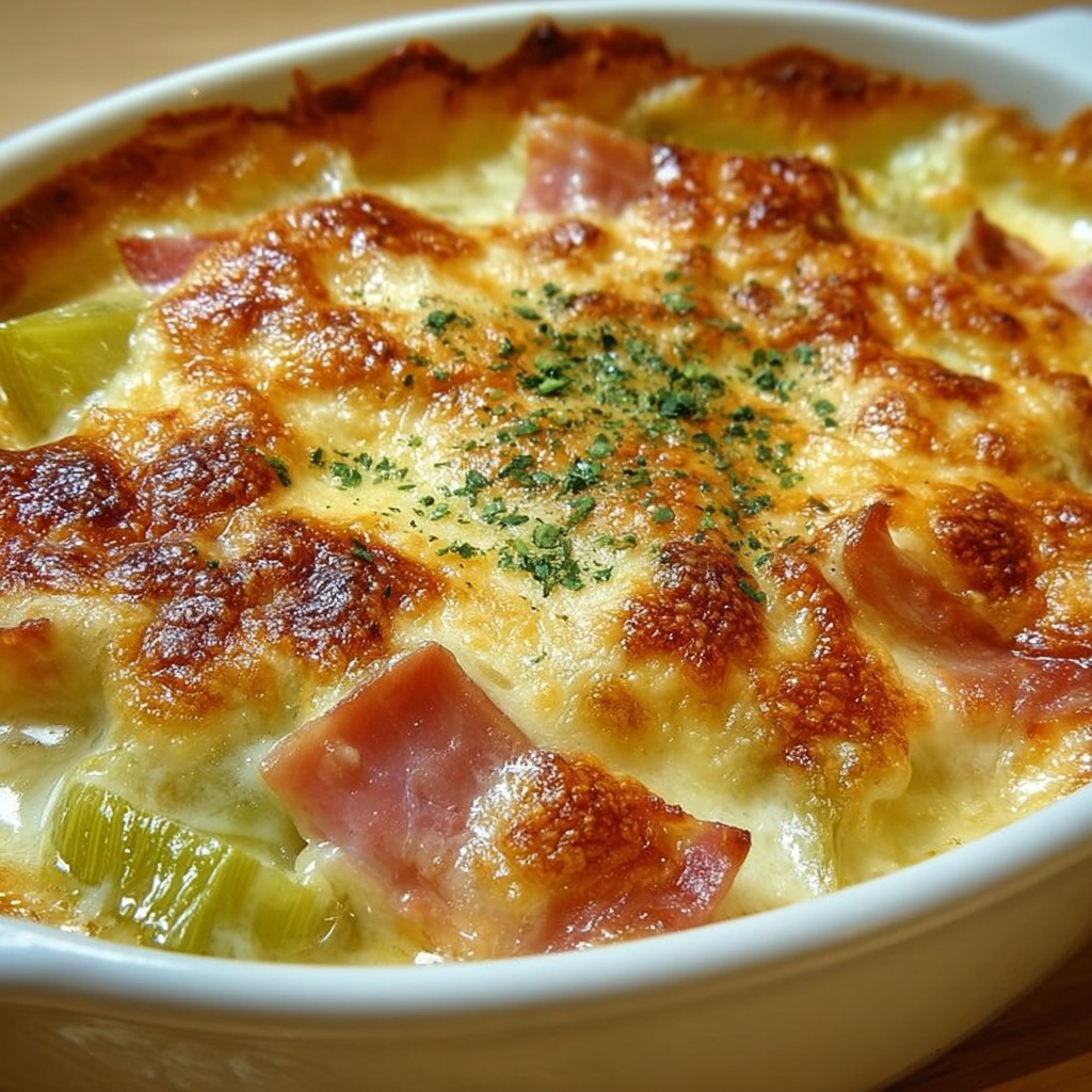Gratin de Poireaux Fondants et Jambon, Crème Fromagée