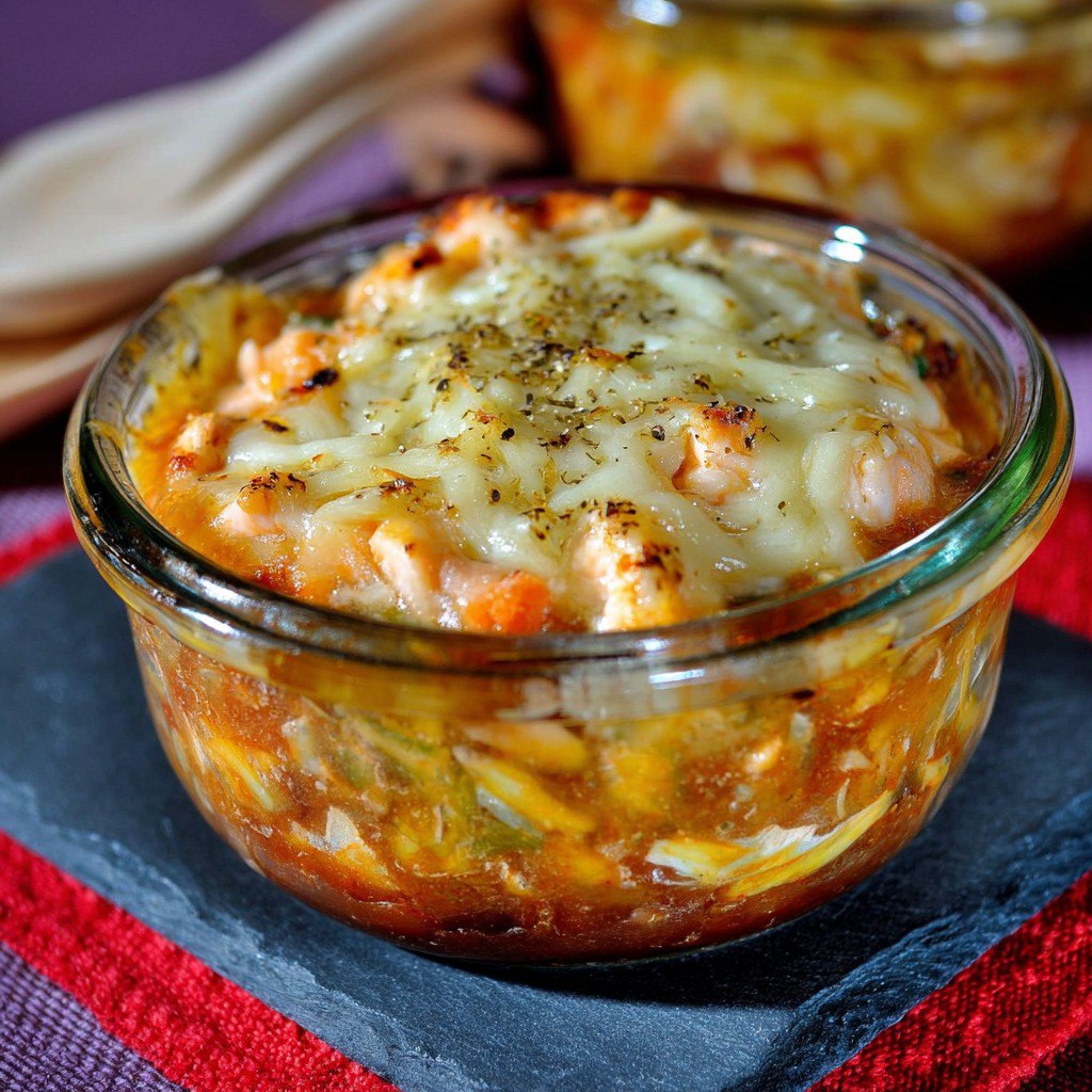 Pour une présentation élégante, servez les cassolettes individuelles directement dans leur récipient, accompagnées d’un filet de jus de citron et d’une branche de persil frais. Vous pouvez aussi disposer le gratin dans un plat large, décorer de feuilles de basilic frais et proposer un assortiment de pains artisanaux pour accompagner.