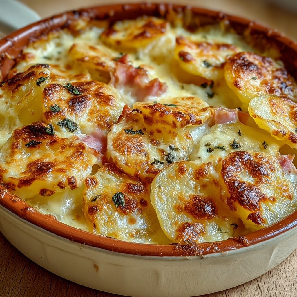 Gratin de pommes de terre à la cancoillotte et au jambon fumé