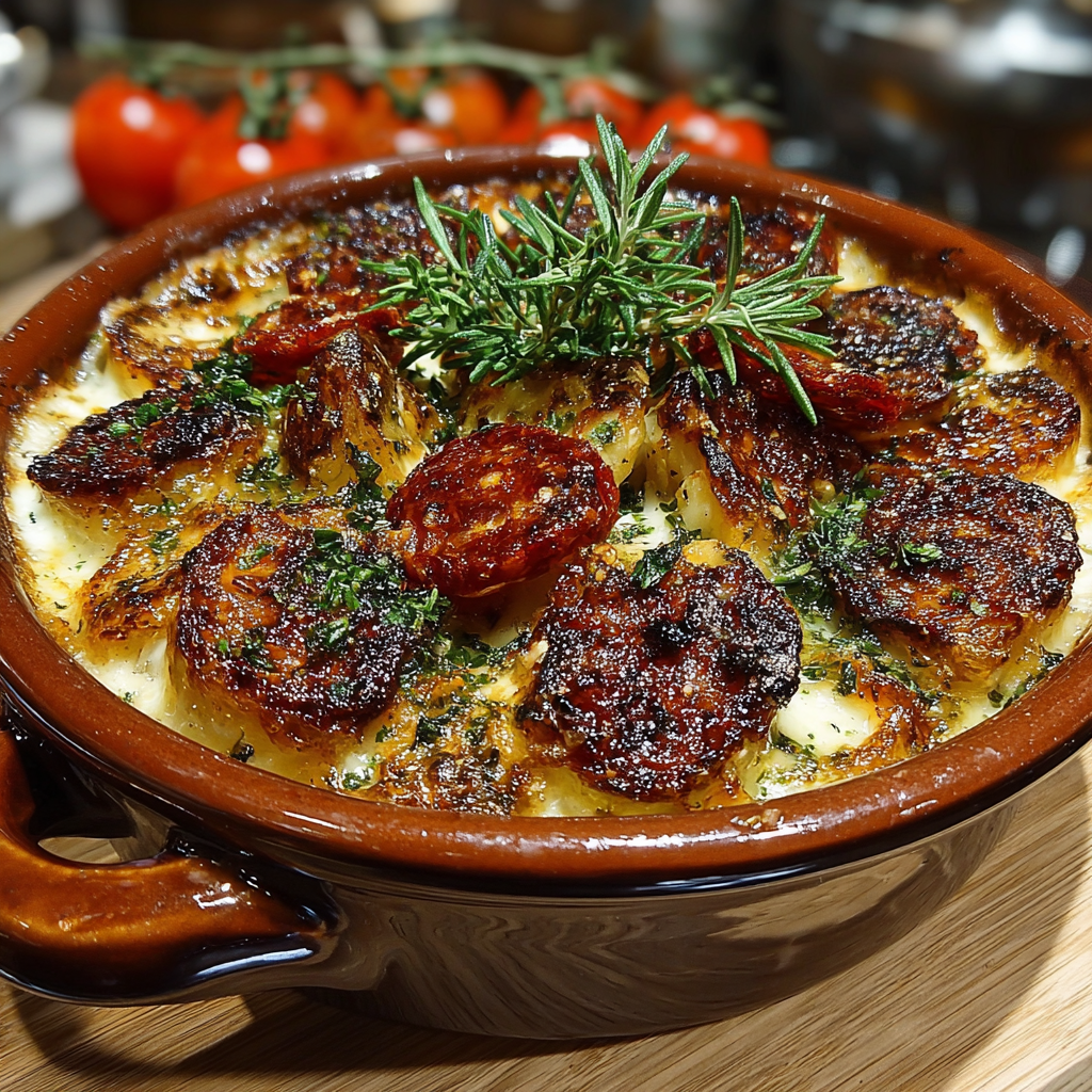 Le gratin de pommes de terre au chorizo, tomate et béchamel est un plat complet, généreux et plein de saveurs. Facile à préparer, chaleureux et gourmand, il transforme un repas simple en véritable moment de plaisir.