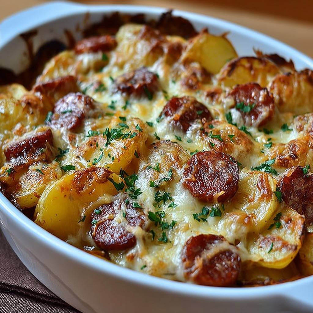 Le gratin de pommes de terre au fromage et à la saucisse fumée est un plat chaleureux, facile à réaliser et toujours apprécié. Il combine simplicité, générosité et gourmandise dans un même plat. Grâce à sa base de pommes de terre fondantes et de saucisses savoureuses, enrobées d’une sauce onctueuse au fromage, il constitue un repas complet, nourrissant et convivial. Que ce soit pour un déjeuner en famille, un dîner entre amis ou un repas de semaine, cette recette a tout pour plaire. Avec quelques ingrédients simples et un peu de temps, vous obtenez un plat riche en saveurs, idéal pour régaler tous les appétits.