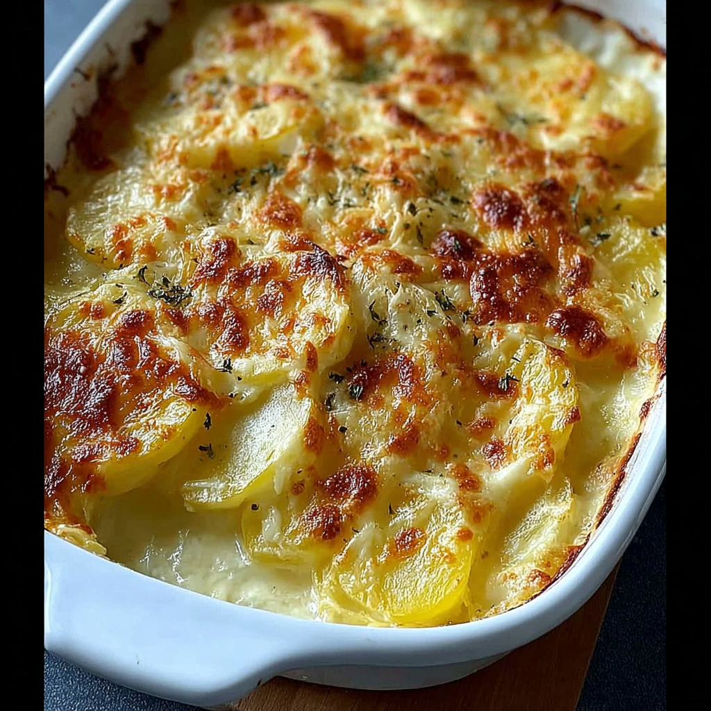 Ce gratin de pommes de terre au fromage incarne la chaleur d’un bon repas maison. Dégustez-le dès la sortie du four pour une croûte croustillante et un intérieur fondant – un vrai bonheur à chaque bouchée !