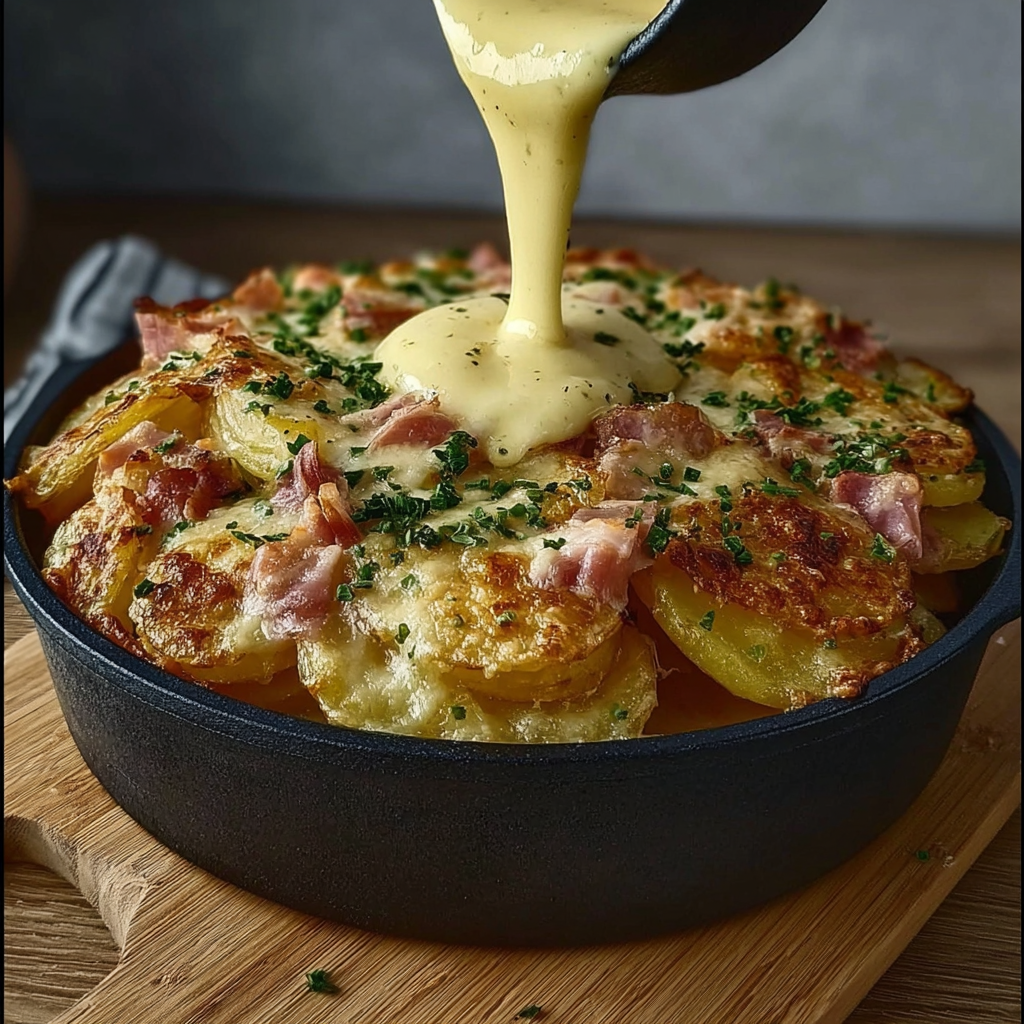 C’est une recette qui ne demande pas d’ingrédients compliqués, mais qui offre un résultat digne des grandes tables familiales. Le mariage des pommes de terre tendres, du jambon savoureux et du fromage fondant, nappé d’une sauce crémeuse, crée une harmonie parfaite entre douceur et gourmandise.