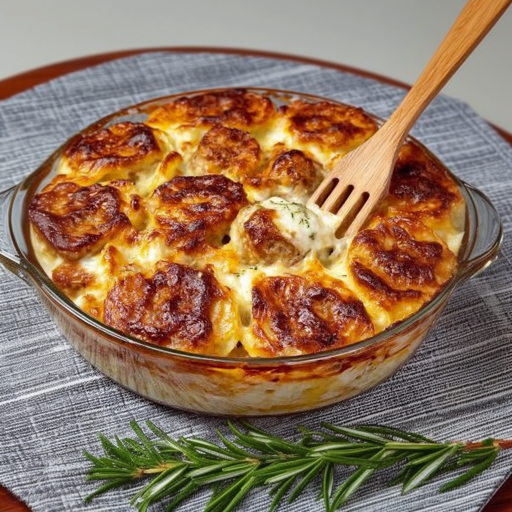 Le gratin de pommes de terre aux boulettes de viande est un plat familial irrésistible, à la fois généreux, fondant et très réconfortant. Il associe la douceur des pommes de terre fondantes à des boulettes de viande savoureuses, le tout enveloppé dans une sauce crémeuse et gratiné au four jusqu’à obtenir une croûte dorée et parfumée.