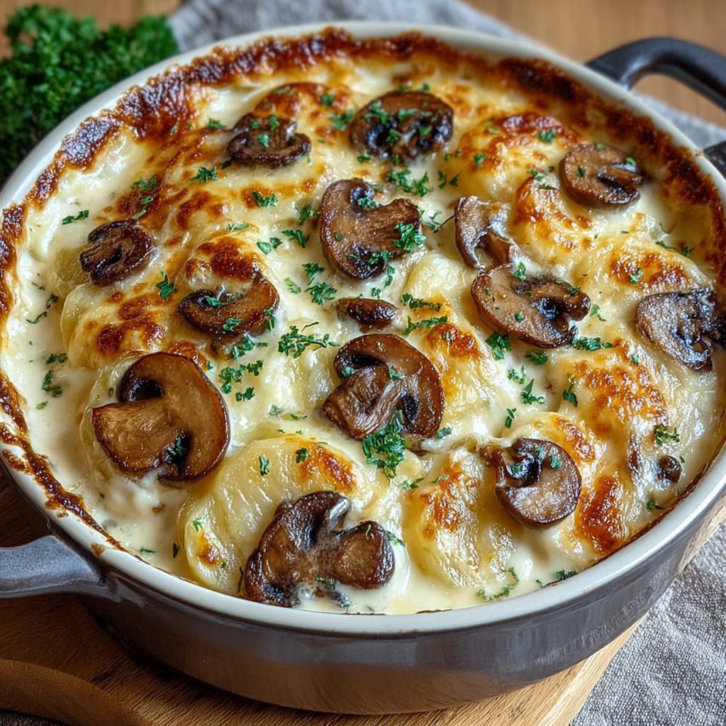 Gratin de pommes de terre et champignons cremeux