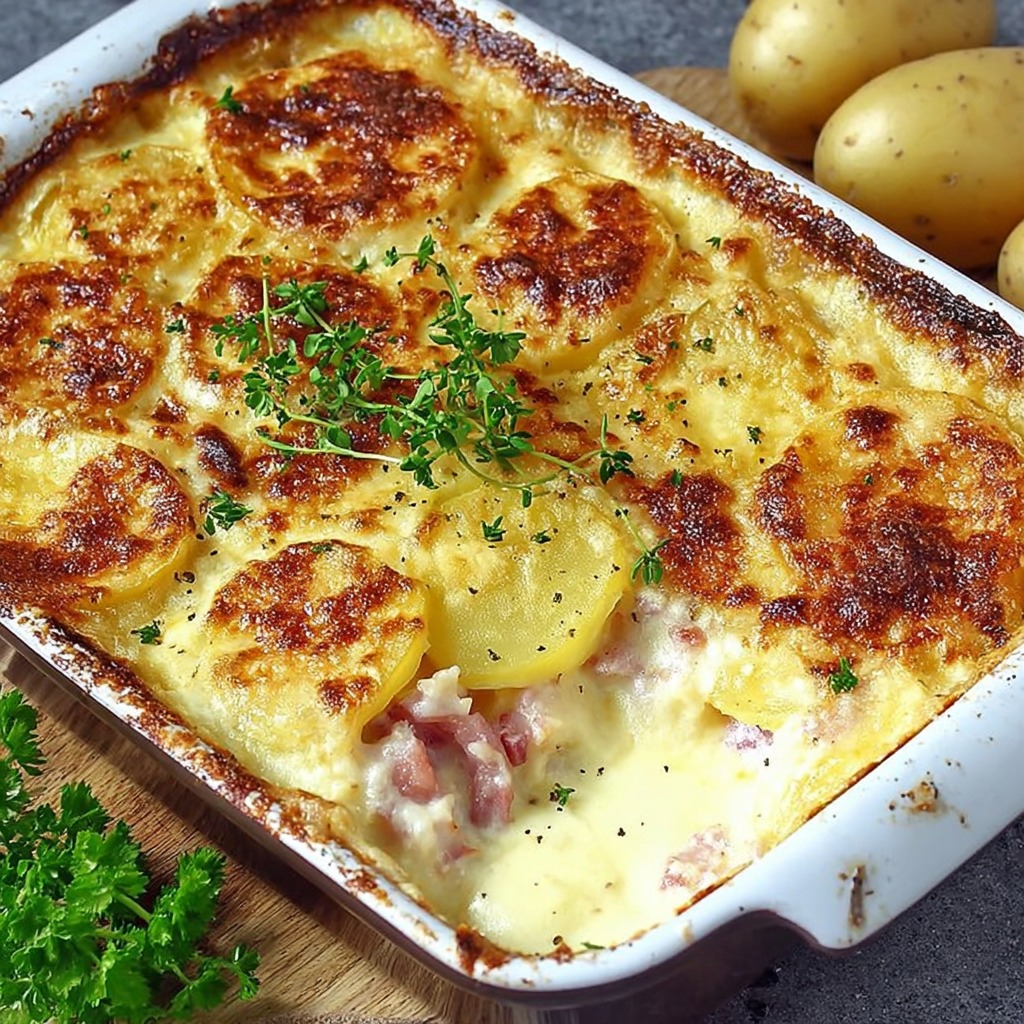 Ce gratin combine fondant des pommes de terre, saveur fumée des lardons et onctuosité de la crème pour offrir un plat familial savoureux et réconfortant. Simple à réaliser et généreux, il es