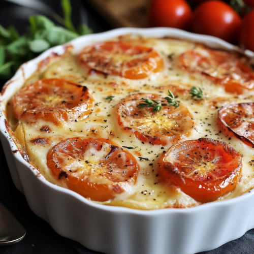 - Gratin avec des légumes supplémentaires : Vous pouvez ajouter des courgettes, des poivrons ou des aubergines en plus des tomates pour un gratin encore plus coloré et nutritif.