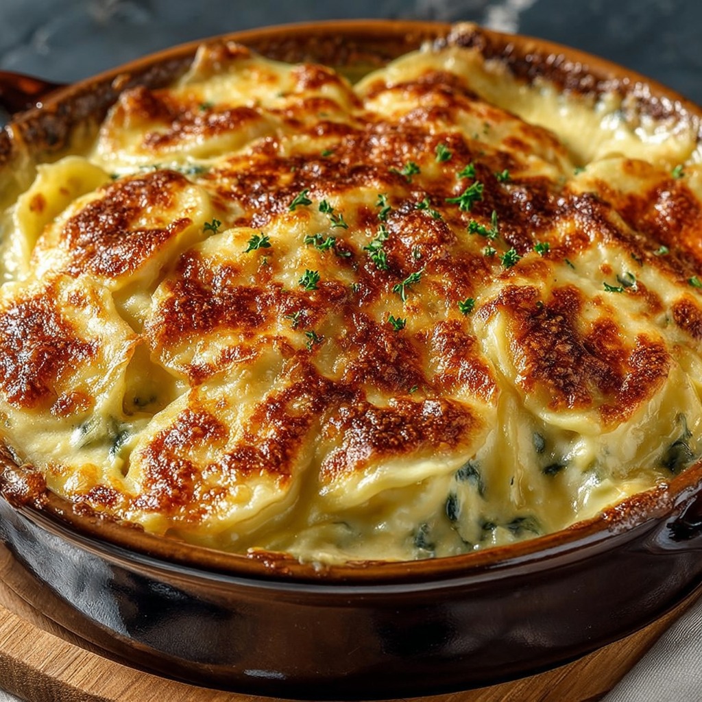 Le gratin de ravioles au bleu et aux noix est un plat gourmand et équilibré, combinant tendreté, crémeux et croquant. Facile à préparer et élégant à servir, il constitue un repas raffiné et chaleureux, parfait pour impressionner lors d’un dîner ou pour savourer un plat convivial et savoureux en famille. La richesse du fromage bleu et le croquant des noix font de ce gratin un incontournable pour les amateur
