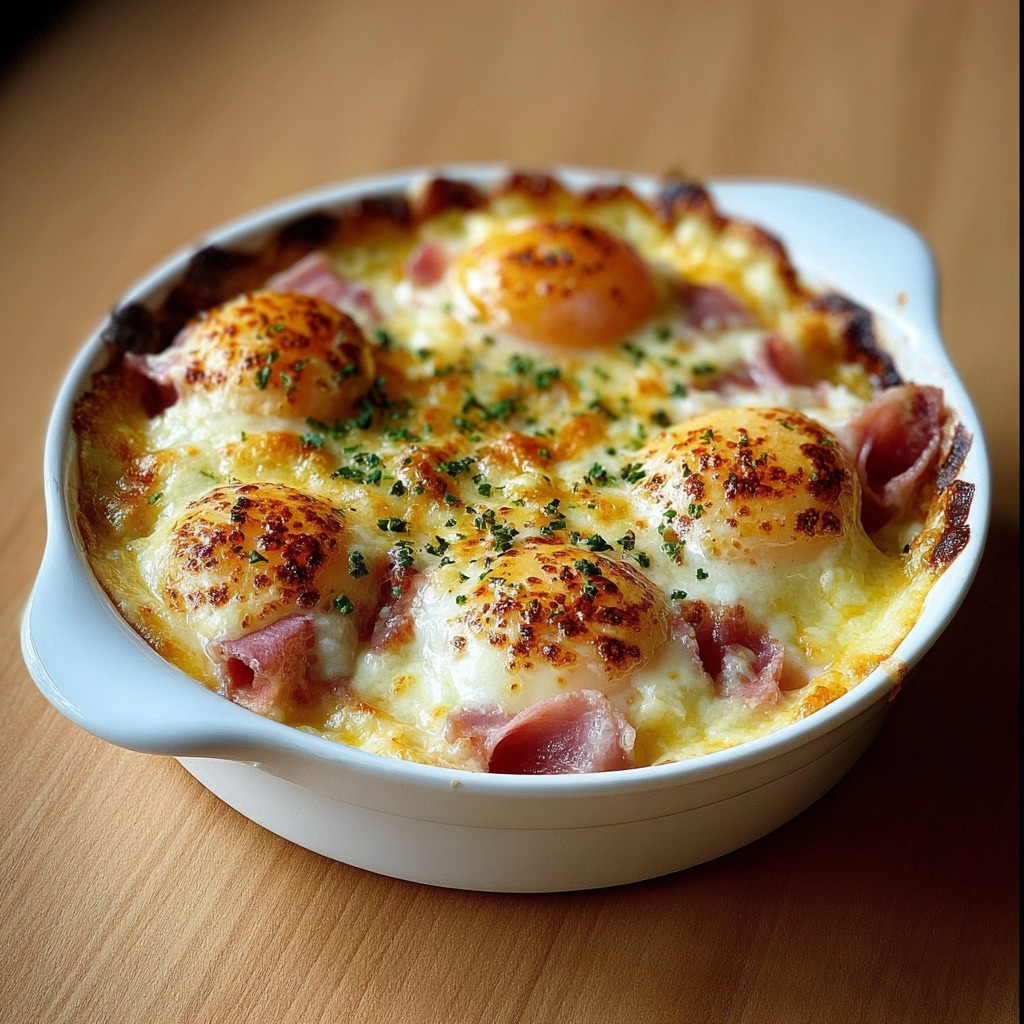 Gratin d’Œufs Durs au Jambon et Béchamel Fromagée
