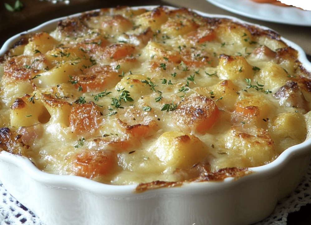 Ce gratin grand-mère est un plat réconfortant et familial qui met à l’honneur les légumes et le jambon, sublimés par une sauce onctueuse au fromage ail et fines herbes. Facile à réaliser, il est idéal pour un repas convivial et équilibré.