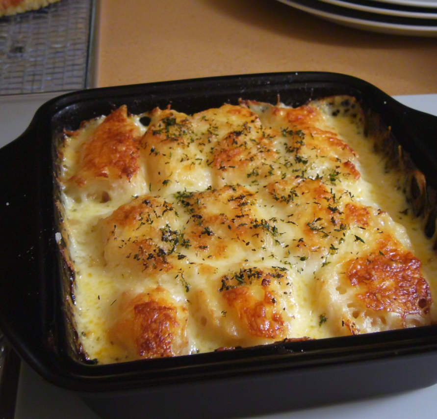 Pour mettre en valeur le gratin, servez-le avec une salade verte fraîche ou des légumes vapeur. Ces accompagnements permettent d’équilibrer la richesse de la sauce et d’apporter une touche de légèreté au repas. -