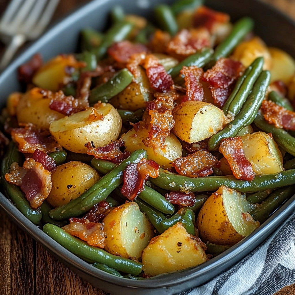 Les Haricots Verts et Pommes de Terre à la Ranch sont un accompagnement délicieux et facile à préparer qui ravira votre famille et vos amis. Ce plat combine la fraîcheur des haricots verts avec la richesse des pommes de terre, le tout relevé par le goût savoureux du bacon et des épices ranch. C’est un excellent choix pour des repas en semaine ou pour des occasions spéciales, offrant une touche de réconfort à chaque bouchée.