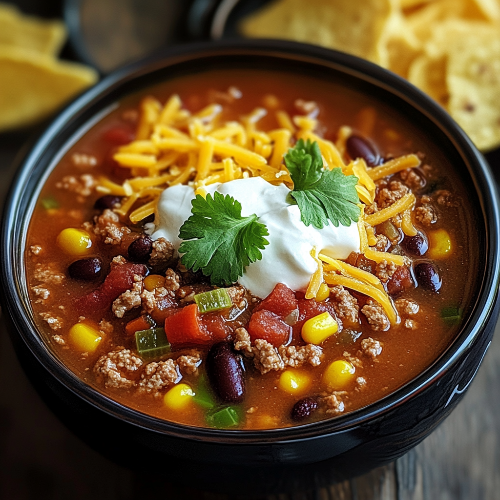 As the days grow cooler and the craving for comfort food kicks in, there’s nothing quite like a warm bowl of soup to satisfy your hunger. This Hearty Taco Soup is the perfect solution—a deliciously comforting and flavorful dish that’s easy to prepare and sure to please the whole family. Packed with ground beef, beans, and classic taco seasonings, it’s a meal that brings all the flavors you love about tacos into a cozy, one-pot dish.