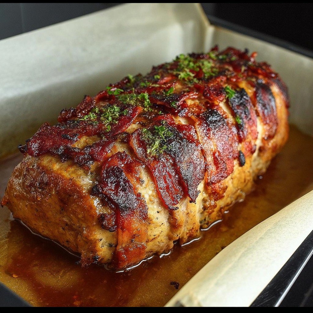Un grand classique revisité : ce pain de viande à base de porc, généreusement assaisonné aux herbes italiennes, garni de parmesan, enveloppé de pancetta et cuit à la perfection. Il peut être servi chaud ou froid, et s’accompagne aussi bien de légumes rôtis que d’une salade ou d’un sandwich gourmand.