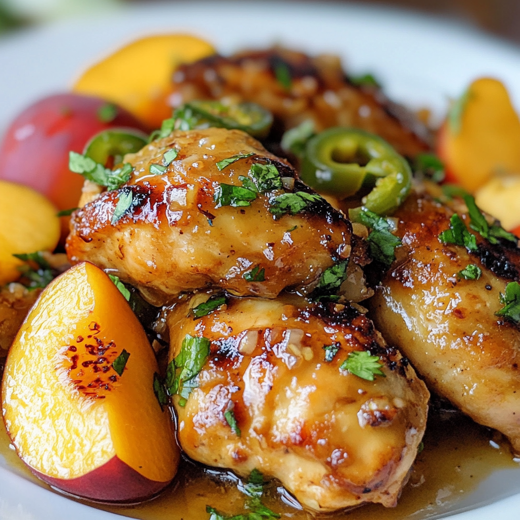 - Serve: Transfer the grilled chicken to a serving platter. Top with the remaining peach-jalapeño mixture from the skillet and garnish with freshly chopped cilantro. This dish pairs beautifully with a side of rice or a fresh salad for a complete meal.