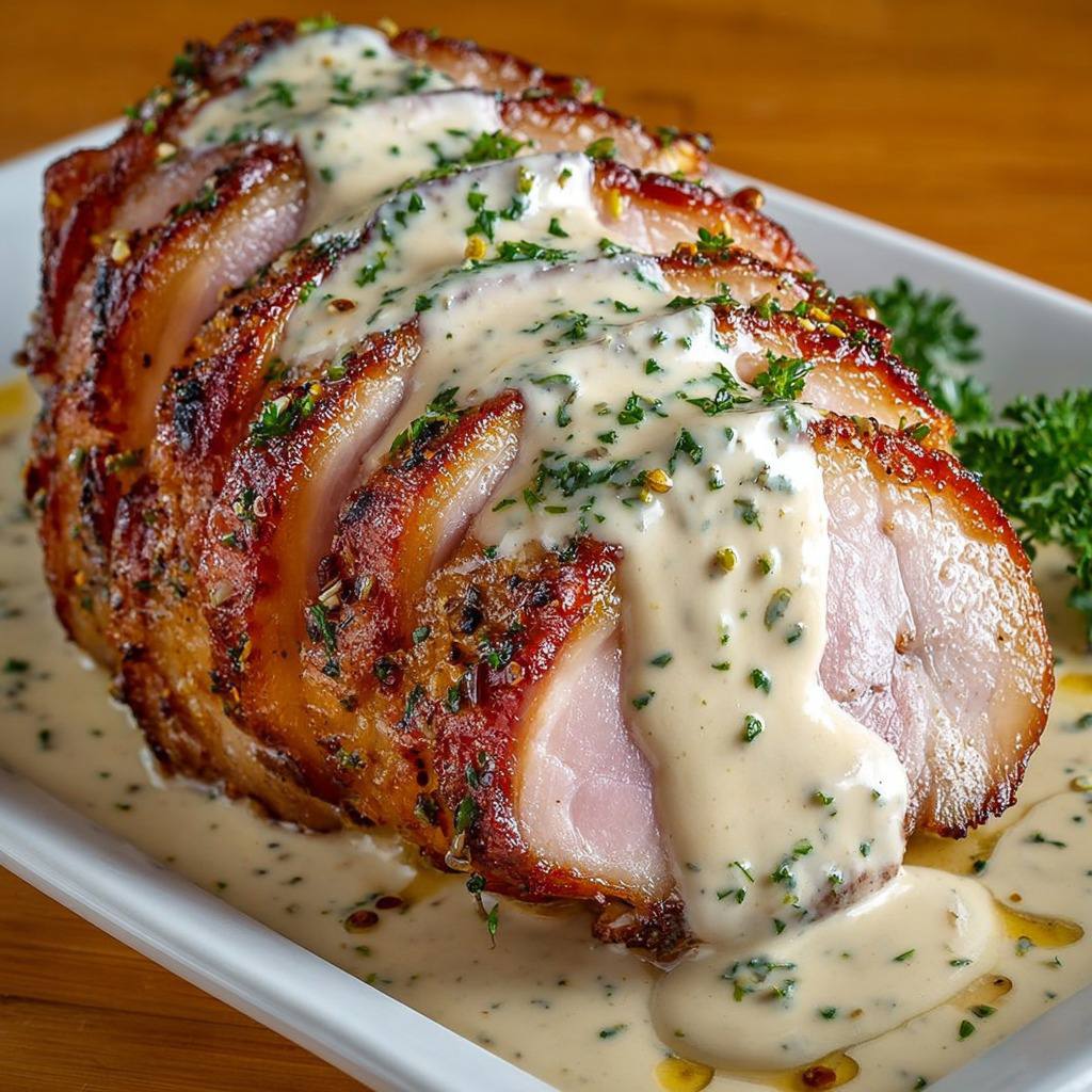 La réussite de ce jambon rôti au four avec sauce crémeuse à la moutarde tient dans la précision des mesures et la patience de la cuisson. La simplicité des ingrédients met en valeur la qualité de la viande et la force aromatique de la moutarde. Chaque élément joue son rôle, de l’huile d’olive qui aide à dorer la croûte à l’ail qui parfume subtilement jusqu’aux herbes qui apportent une profondeur méditerranéenne. La sauce vient enrober le tout et transforme le plat en une expérience gastronomique complète.