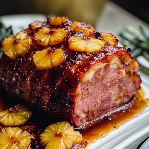 Cette recette allie simplicité et sophistication, parfaite pour les repas en famille ou les grandes fêtes. Le glaçage sucré-salé met en valeur la tendreté du jambon tout en offrant une expérience gustative unique grâce aux notes tropicales de l’ananas.