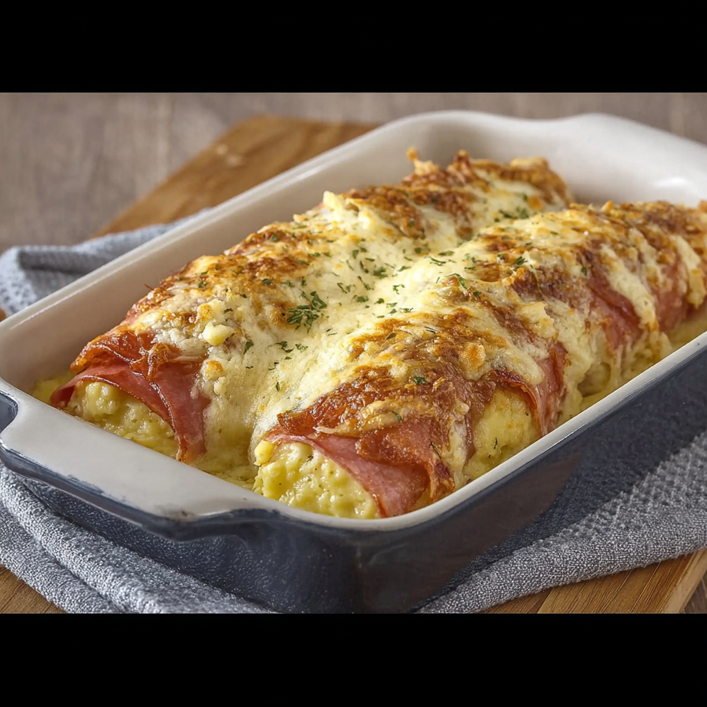 Le jambon roulé à la purée et à la béchamel est un grand classique de la cuisine familiale. À la fois économique, généreux et facile à préparer, ce plat réunit tout ce que l’on aime : une purée de pommes de terre onctueuse, des tranches de jambon savoureuses et une béchamel crémeuse gratinée au four.