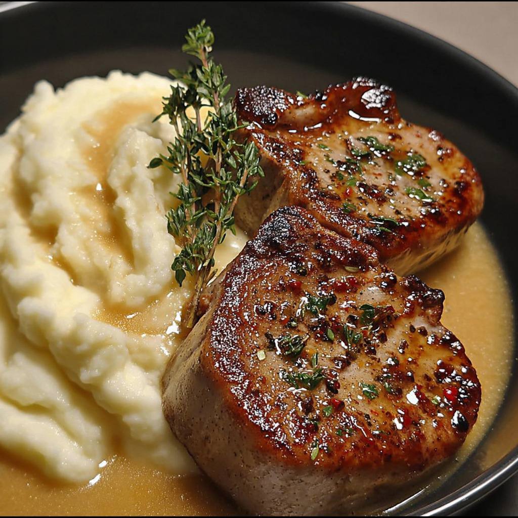 Juteux et savoureux servi avec une purée de pommes de terre crémeuse