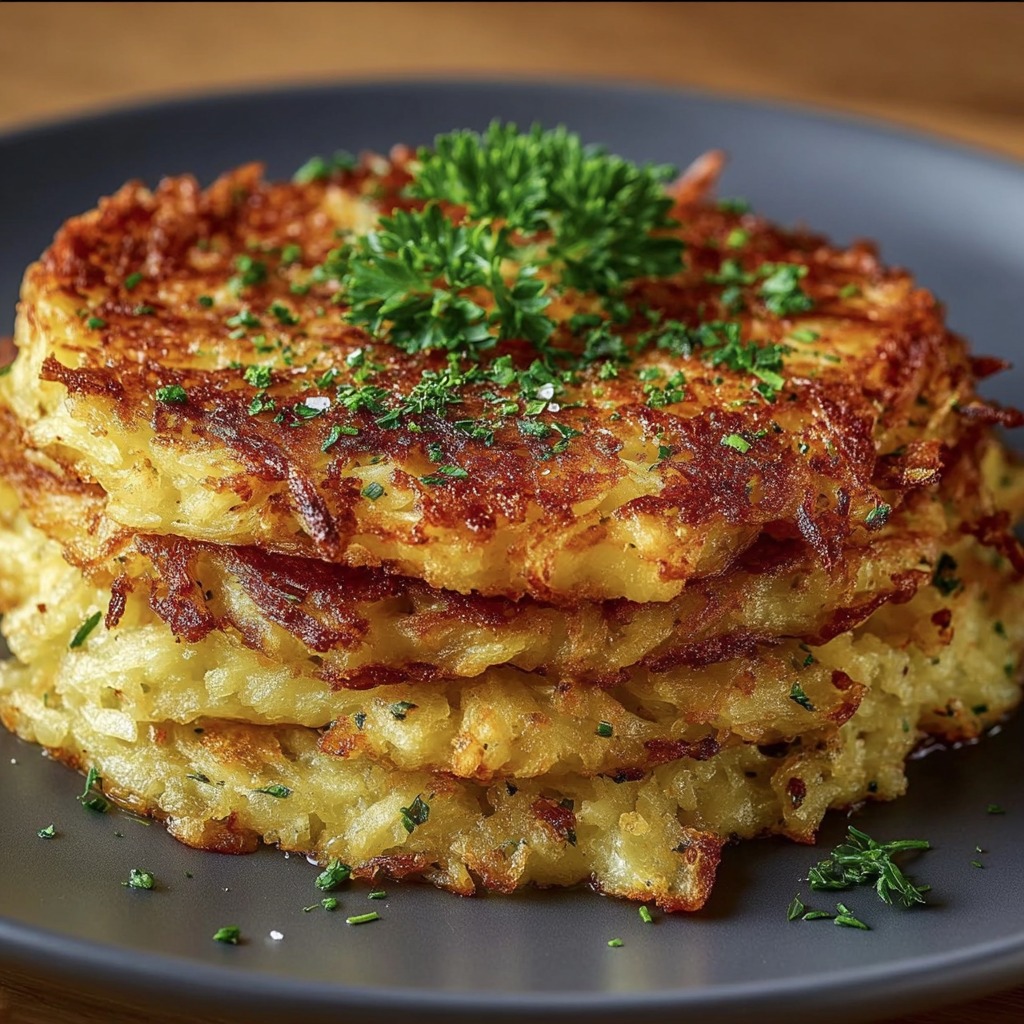 La préparation commence par le râpage des pommes de terre. Cette étape doit être réalisée juste avant l’assemblage afin d’éviter l’oxydation. Les pommes de terre râpées sont immédiatement mélangées aux œufs, à la farine, à l’ail et au persil.