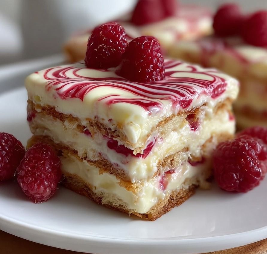 Servi en portions individuelles ou en plat familial, les lasagnes au chocolat blanc et framboises offrent une alternative originale aux desserts classiques, alliant raffinement, saveur et esthétisme. Chaque portion est une composition visuelle séduisante, où les couleurs vives des fruits contrastent avec la douceur du chocolat blanc, créant un effet gourmand et appétissant. Cette recette incarne l’art de transformer un dessert traditionnel en une création contemporaine et festive, capable de séduire petits et grands par sa texture fondante et son mariage parfa