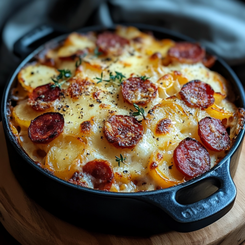 Le Gratin de Pommes de Terre, Chorizo, Tomate et Béchamel est une recette simple mais riche en saveurs. Adaptable selon vos envies, ce plat convivial deviendra rapidement un incontournable de votre table. Bon appétit !
