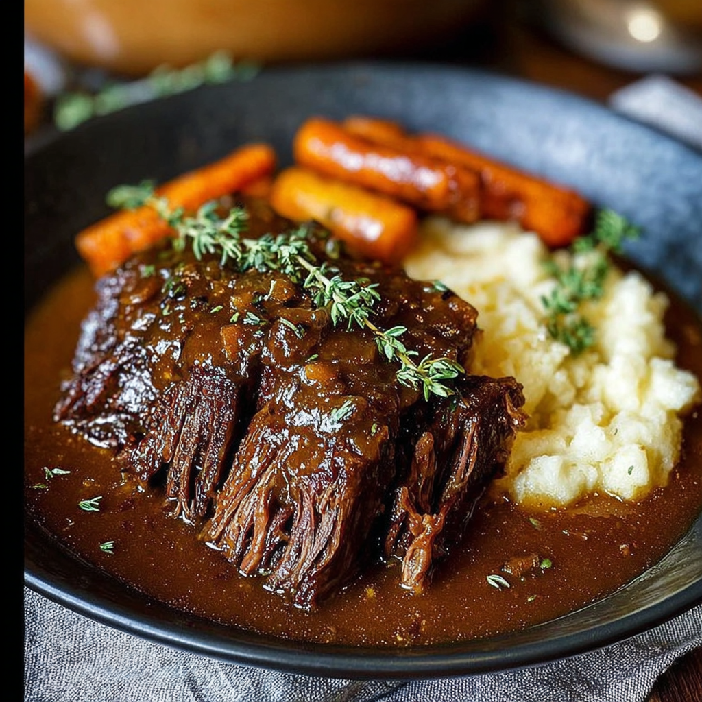 Parce qu’elle combine la tendreté d’un rôti de bœuf (ou rôti de veau selon vos goûts), une cuisson lente qui concentre les saveurs, et une sauce maison onctueuse aux échalotes, ail rôti, fond de veau et crème, le tout relevé par une touche de vin rouge. Elle incarne la générosité du terroir français et la perfection du confort food.