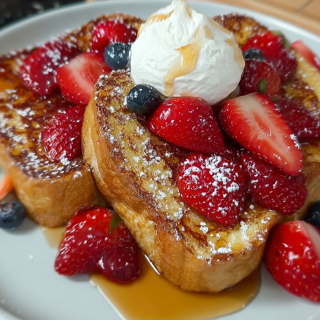 En conclusion, cette version généreuse et raffinée du pain perdu est idéale pour toutes celles et ceux qui cherchent à transformer un simple petit-déjeuner en moment de fête. Facile à réaliser, rapide à préparer et toujours savoureuse, elle s’adapte à toutes les saisons et à tous les palais. Que l’on choisisse de suivre la recette à la lettre ou d’y apporter sa touche personnelle, l’important est de prendre plaisir à cuisiner et à partager. Le pain perdu, loin d’être un plat ordinaire, est une invitation à redécouvrir le bonheur dans la simplicité.