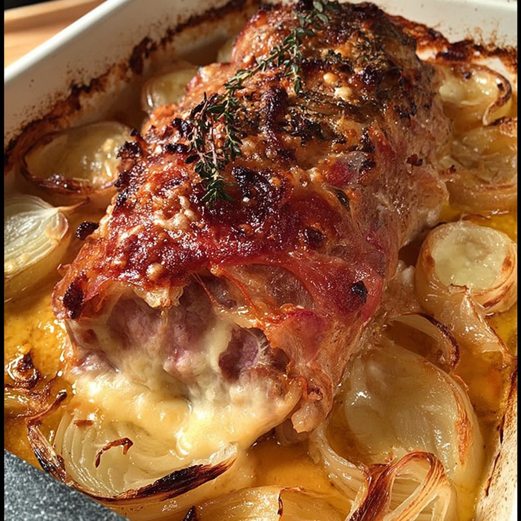 À la sortie du four, le rôti présente une surface dorée et légèrement gratinée. À la découpe, le fromage coule généreusement entre les tranches de viande et de jambon. La texture est fondante, presque confite, et la sauce est épaisse, brillante et profondément parfumée. Chaque bouchée offre une intensité digne des plats d’hiver les plus décadents.