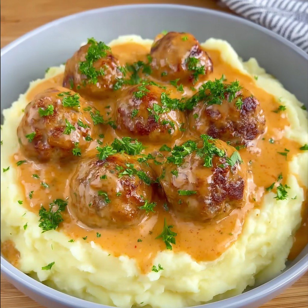 Les boulettes de viande à la sauce crémeuse, servies avec une purée de pommes de terre maison, composent un plat généreux et réconfortant qui allie la tendresse de la viande, l’onctuosité de la sauce et la douceur des pommes de terre. C’est une recette idéale pour les repas familiaux ou les moments où l’on recherche un peu de chaleur et de gourmandise dans l’assiette. Elle peut être réalisée avec des ingrédients simples, mais elle offre un résultat savoureux et bien équilibré.