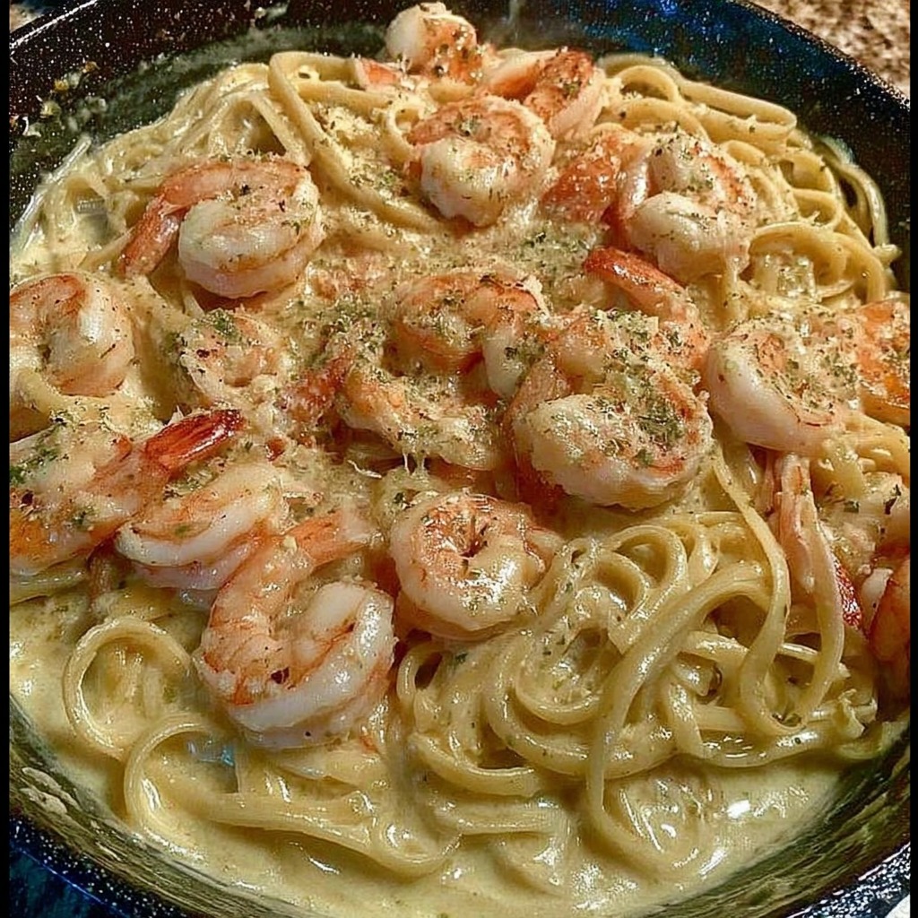 Le plat peut être préparé en portions individuelles ou pour plusieurs personnes, servi chaud et accompagné éventuellement de vin blanc sec pour compléter la saveur marine des crevettes et la richesse de la sauce. La polyvalence de la recette permet également de l’adapter en version familiale, festive ou même en lunch rapide, garantissant toujours un résultat gourmand et élégant.