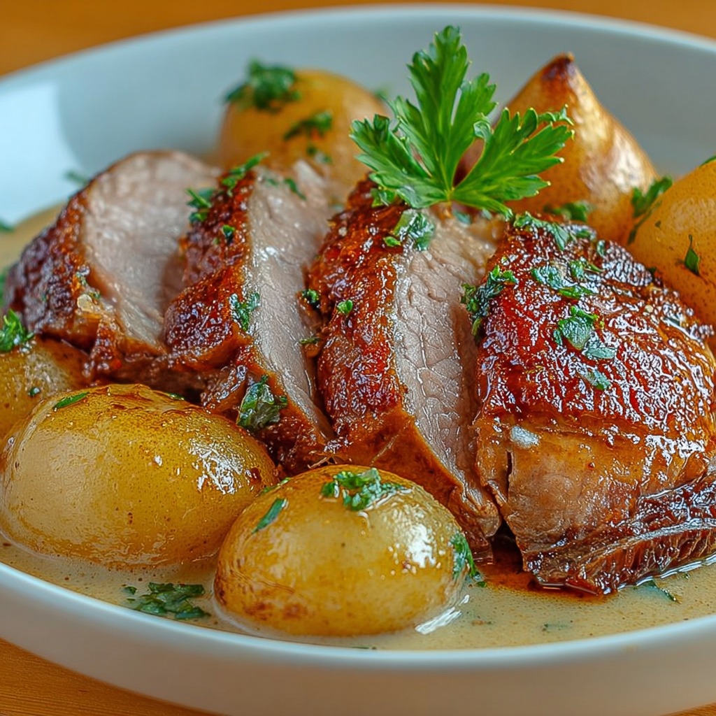 Ce plat incarne ainsi le mélange parfait entre tradition et créativité. La base repose sur une cuisson classique du canard, tandis que l’ajout de poires caramélisées et de gingembre offre une interprétation contemporaine pleine de fraîcheur. Il témoigne de la richesse et de la polyvalence de la cuisine autour du canard, un produit emblématique souvent associé à la gastronomie française de caractère. Ce mariage de douceur, de profondeur et d’épices douces constitue une invitation à savourer un plat équi