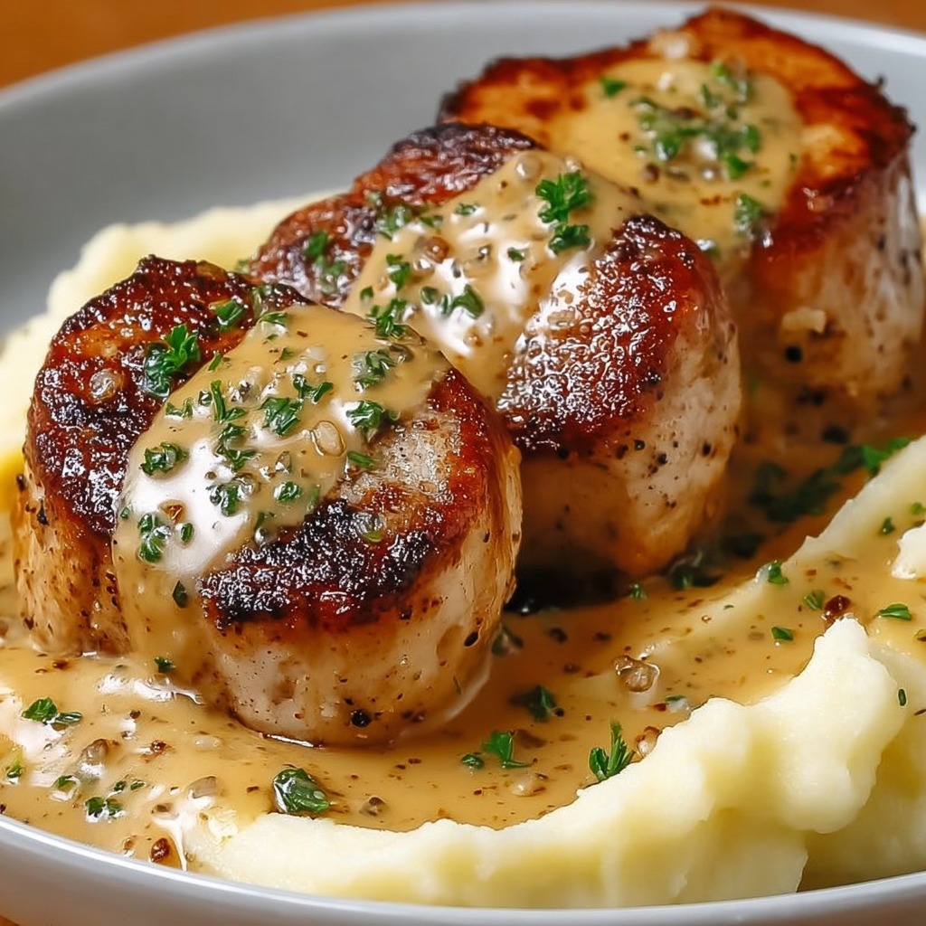 - Médaillons de porc à la sauce moutarde sur purée maison
