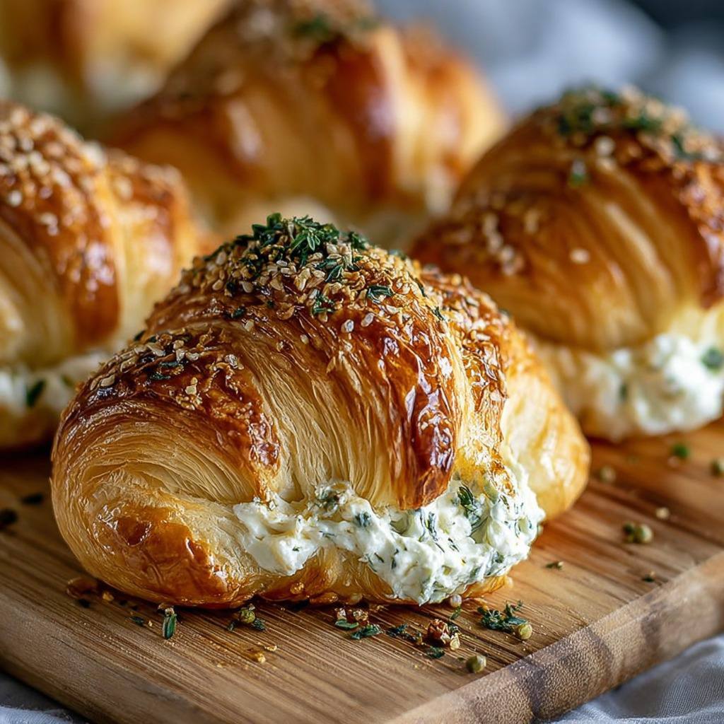 Ces mini croissants séduisent par leur contraste de textures. La pâte feuilletée est légère, aérienne et croustillante, tandis que la garniture est fondante et parfumée. Les herbes fraîches apportent une note aromatique délicate qui met en valeur la simplicité du fromage frais. Chaque bouchée est équilibrée entre la gourmandise de la pâte et la fraîcheur de la farce.