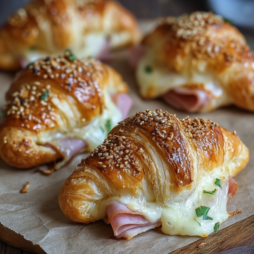 Les mini croissants jambon-fromage sont un en-cas gourmand, parfait pour l’apéritif, un brunch ou un goûter. Leur pâte feuilletée croustillante et dorée renferme une garniture savoureuse et fondante composée de jambon et de fromage. Faciles à préparer, ces mini croissants allient rapidité, esthétique et goût, séduisant petits et grands. La combinaison du jambon salé et du fromage fondant crée une explosion de saveurs à chaque bouchée, tandis que la pâte feuilletée apporte légèreté et croustillant. Ce plat met en valeur des ingrédients simples, transformés en un encas festif et raffiné qui impressionne par sa présentation et son goût.