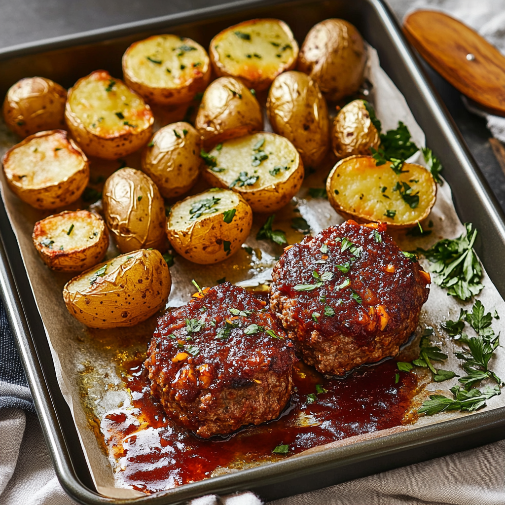 Mini Pain de Viande et Pommes de Terre Rôties sur Plaque : Un Repas Complet Facile à Préparer