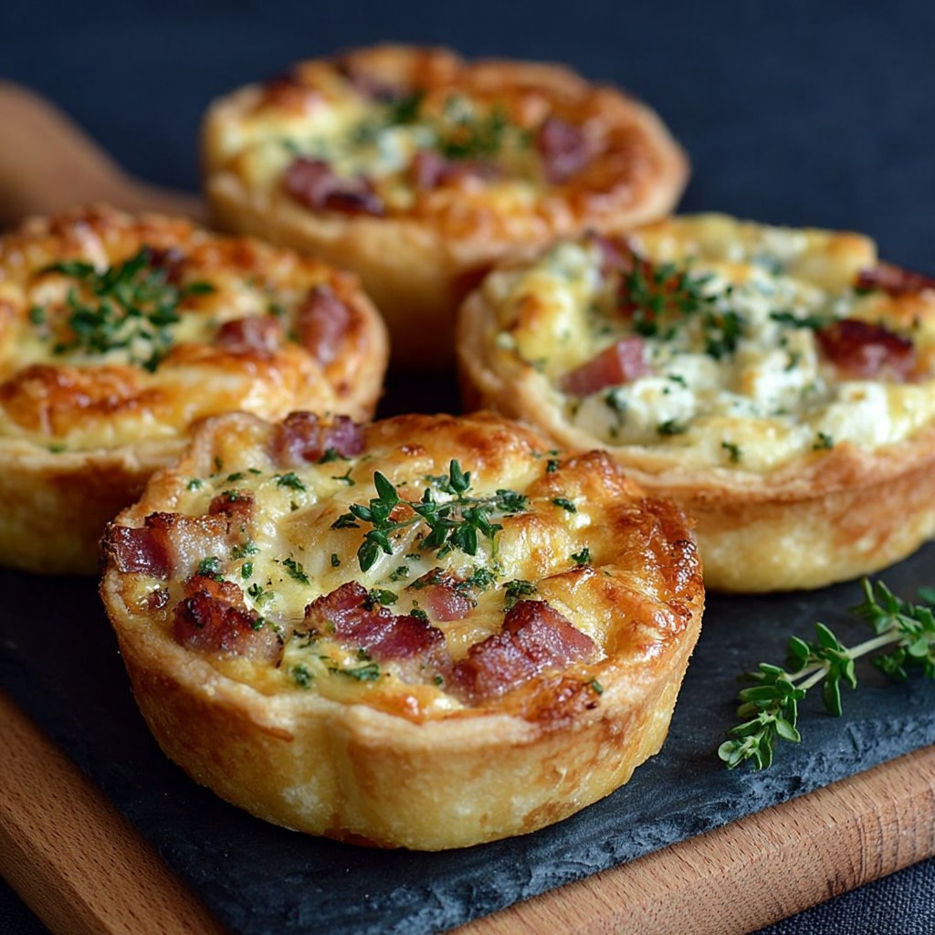 À la dégustation, les mini quiches doivent présenter une pâte légèrement croustillante, un intérieur moelleux et une garniture bien répartie. Les lardons apportent une note salée et fumée, équilibrée par la douceur du fromage et la rondeur de la crème.