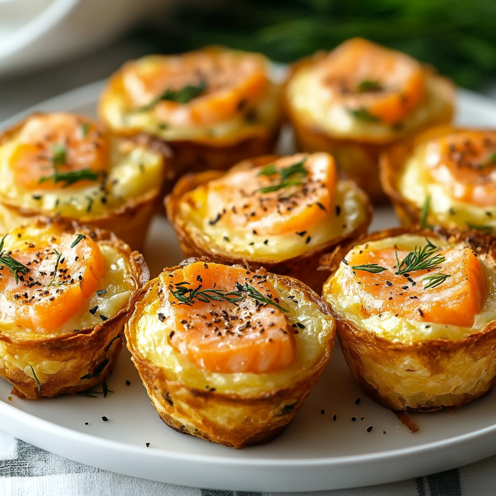 Les mini-quiches sans croûte au saumon fumé et à l’aneth sont des bouchées idéales pour un apéritif chic ou un repas léger. Ces petites merveilles sont non seulement faciles à réaliser, mais elles offrent une explosion de saveurs en bouche grâce au mariage parfait du saumon fumé et de l’aneth. En plus, ces quiches sont légères et sans la contrainte de la pâte, ce qui les rend encore plus simples à préparer. Parfaites pour des invités ou pour un brunch, elles séduiront tous les palais par leur côté gourmand et raffiné.