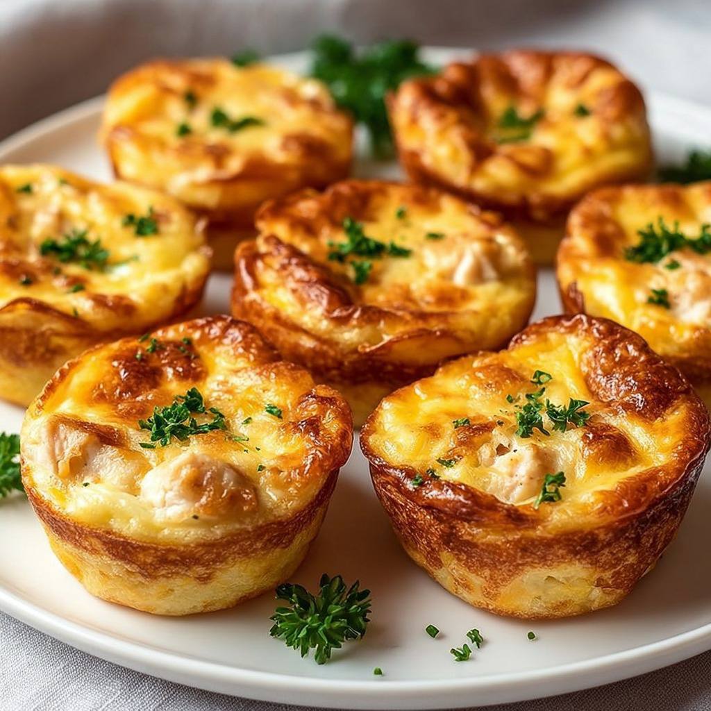Recette de mini quiches sans croûte au poulet et au fromage dans des moules à muffins
