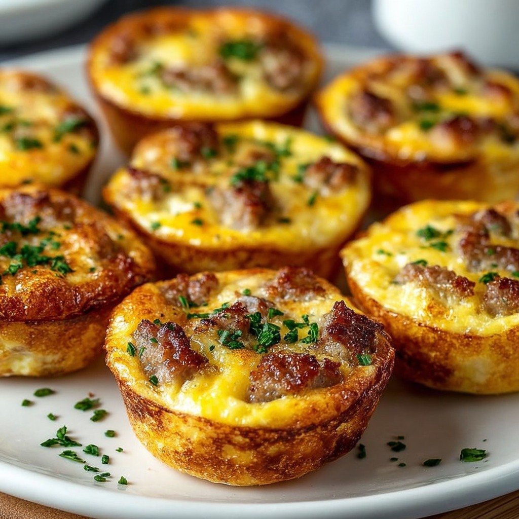 Les mini quiches sans croûte ont une texture moelleuse et fondante grâce aux œufs et à la crème. La saucisse apporte une saveur fumée et légèrement épicée, tandis que le fromage fondant crée une onctuosité agréable. Chaque bouchée combine douceur, salé et richesse, idéale pour les petits repas ou les apéritifs.