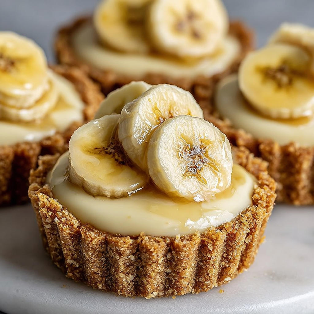 Les mini tartelettes à la crème de banane sont un petit bijou pâtissier : une croûte sablée à base de biscuits écrasés, une crème onctueuse à la banane, et parfois une touche de chantilly aérienne pour couronner le tout.