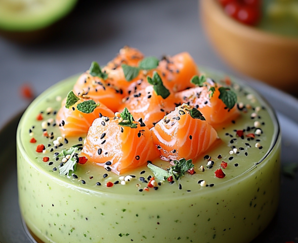 La mousse à l’avocat et au saumon fumé est une recette simple, mais élégante. Ce mélange de saveurs fraîches et crémeuses apportera une touche de raffinement à vos repas, tout en étant rapide et facile à réaliser. L’avocat, riche et onctueux, se marie parfaitement avec la délicatesse du saumon fumé, créant une entrée qui ravira vos invités ou une idée de snack gourmet pour une occasion spéciale.