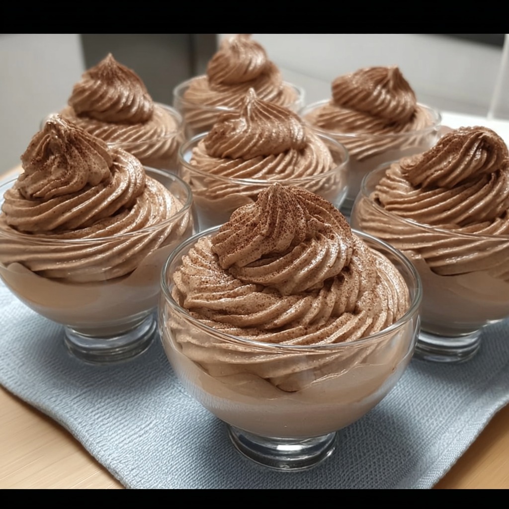 Avant de servir, la mousse peut être décorée pour apporter à la fois du croquant et de la couleur. Vous pouvez saupoudrer légèrement de cacao en poudre non sucré, ajouter quelques copeaux de chocolat noir ou au lait, disposer des fruits rouges frais comme des framboises ou des myrtilles, ou encore parsemer de noisettes ou amandes concassées. Ces garnitures apportent un contraste agréable avec la douceur et l’onctuosité de la mousse et rendent le dessert visuellement plus attrayant.