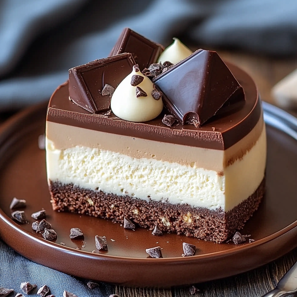 La mousse trois chocolats sur biscuit moelleux est un dessert raffiné qui ravira tous les amateurs de chocolat. Composée de trois mousses légères – chocolat noir, chocolat au lait, et chocolat blanc – sur un biscuit cacao moelleux, cette recette est une véritable explosion de saveurs et de textures. La touche finale : un glaçage miroir lisse et brillant, agrémenté de décorations en chocolat. Ce dessert est parfait pour toutes les occasions spéciales, que ce soit un dîner entre amis, un anniversaire ou une fête en famille.