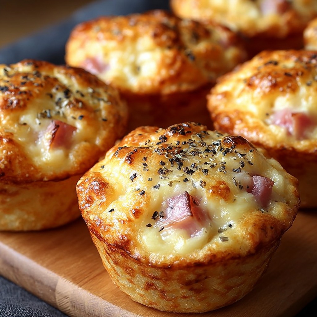 Muffins croustillants au jambon et fromage sont une gourmandise salée idéale pour le petit-déjeuner, le brunch, ou comme en-cas savoureux à tout moment de la journée. Ces muffins combinent une texture moelleuse à l’intérieur, enrichie par le jambon et le fromage fondant, avec une croûte légèrement dorée et croustillante à l’extérieur. Leur saveur riche et équilibrée séduit petits et grands, et leur format individuel les rend pratiques à servir lors de repas conviviaux ou de buffets.